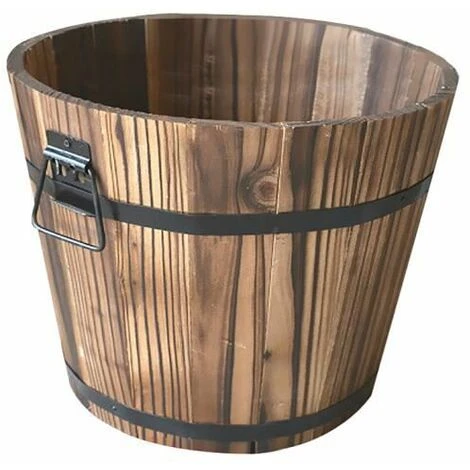 2x Planteurs De Baril De Seau En Bois Jardinières en tonneau en bois, jardinières de patio rustiques, pots de fleurs, 10x12CM