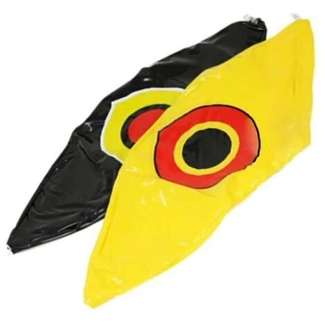 - Ces 2 ballons de couleurs vives avec des dessins représentants des yeux sont identifiés comme des prédateurs et font fuir tous les volatiles grùce à leur mouvement permanent produit par le vent.