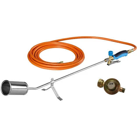 Le CFH GV900 est un brûleur de mauvaises herbes professionnel équipé d’une grande tête de brûleur. Ce désherbeur GV900 est livré avec un tuyau de gaz de 5 mètres. Ce tuyau de gaz convient aux grandes bouteilles de gaz de 5, 10 ou 33 kg. Cela signifie que vous n’êtes pas dépendant des petites bouteilles de gaz. Les grandes bouteilles de gaz sont disponibles dans la plupart des stations-service, des magasins de camping et / ou des quincailleries. Le CFH GV900 est un produit de très haute qualité pour une durée de vie extrêmement longue. Entièrement chromé et équipé d’une poignée ergonomique. Au niveau de la poignée, il y a un bouton rond avec lequel la pression du gaz peut être réglée. Lorsque vous relâchez la poignée de pression, vous n’avez qu’une veilleuse. En pressant la poignée de pression, le brûleur reçoit la grande flamme de travail (fixée). Combattez toutes vos mauvaises herbes indésirables avec ce brûleur de mauvaises herbes CFH GV900 fiable.