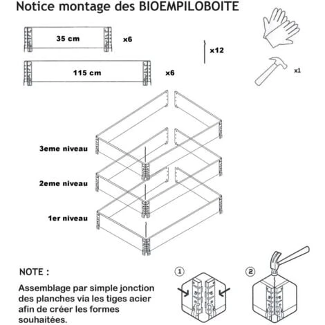Le montage s’effectue sans clous ni vis, par simple superposition et emboitement des éléments. Nos carrés potagers sont modulables ( en achetant des planches au détail de la longueur que vous souhaitez ) , vous pourrez laisser libre cours à votre imagination, en jouant sur les hauteurs et les superpositions, pour fabriquer votre propre carré potager en fonction de vos besoins