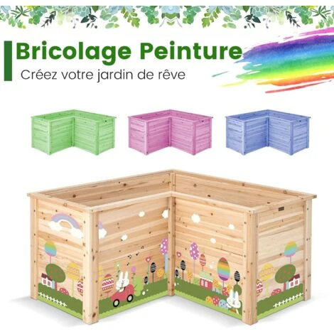 - Notre grand jardin surélevé en forme de L mesure 120 x 120 x 62 cm (L x l x H), vous permettant de cultiver diverses plantes telles que des fleurs, des herbes, des légumes, des fruits et bien plus encore. Grâce à sa conception surélevée, notre boîte de plantation est idéale pour faire pousser des plantes ou des jeunes plants avec de longues racines. De plus, elle adopte une base ouverte, ce qui est excellent pour le drainage de l’eau, la conservation du sol et le développement des racines. La boîte de plantation en bois est fabriquée à partir de bois de sapin massif à 100%, qui n’est pas facile à déformer ou à absorber l’eau, assurant une durabilité à long terme. En outre, la surface de bois couleur naturelle offre une place pour l’imagination, vous permettant de styliser votre boîte de plantation de jardin avec votre créativité, créant ainsi un ajout parfait à votre jardin !