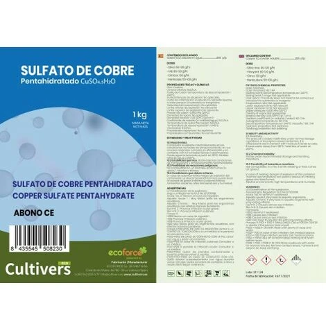 SULFATE DE CUIVRE CUPRIQUE CULTIVERS CuSO, 1 kg, poudre mouillable