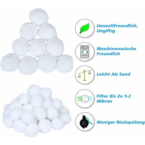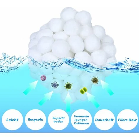 - Haute efficacité et économie d’énergie : boule filtrante pour systèmes de filtration à sable Les boules filtrantes de piscine de 700 g peuvent remplacer les filtres à sable de 25 kg, le sable de quartz ou le verre filtrant de 20 kg, pour un faible poids et des économies de coûts.