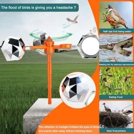fuir. peut être obtenu une réfraction de la lumière du soleil à 360 degrés et une luminosité plus élevée pour dissuader les oiseaux.Sa fonction est de faire fuir les oiseaux, pas de leur faire du mal.