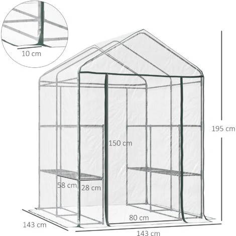 Cette superbe serre de jardin protègera efficacement vos plantes afin d’en tirer le meilleur rendement possible. Equipée d’une porte déroulante zippée avec cordons d’attache, d’une structure an acier thermo-laqué, d’une bâche rallongée et de 4 étagères latérales, vous pourrez sereinement protéger vos plantes.