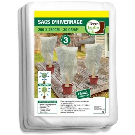 - Pour une protection efficace contre le gel et les intempéries, ce lot de 3 sacs d’hivernage en polypropylène de 30 g/m² est l’article qu’il vous faut !