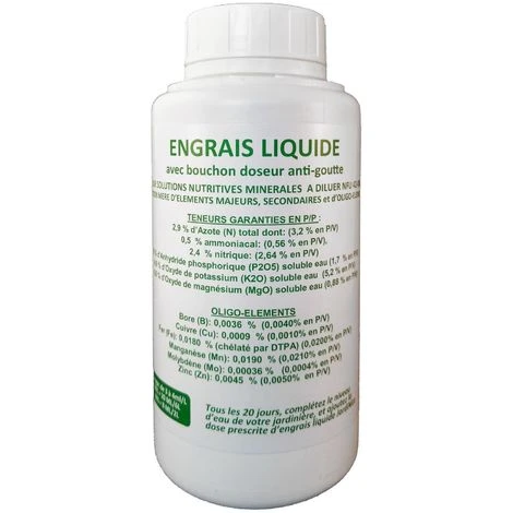 | Dosage de l’engrais | De 3 à 4 ml par litre d’eau |