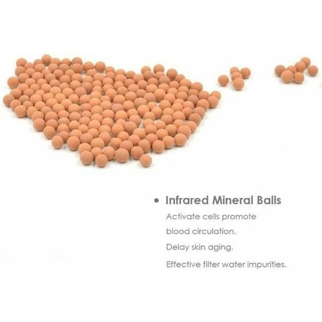 - Boules minérales infrarouges : les boules minérales rouges éliminent les bactéries, le chlore résiduel de l’eau du robinet, les métaux lourds, restaurent la peau plus lisse, rendent vos cheveux brillants et lisses.
