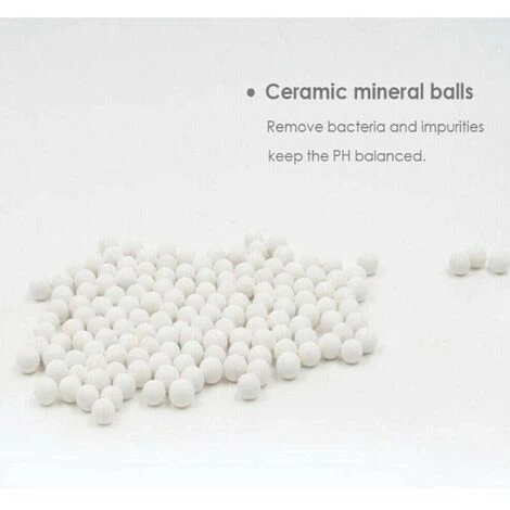 - Boules minérales à ions négatifs : les boules minérales blanches ajustent la valeur du pH de l’eau, réduisent l’accumulation de rouille et restaurent la peau lisse, rendent vos cheveux brillants et lisses.