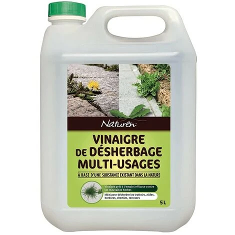 NATUREN Vinaigre de Désherbage Multi-usages 5L NVIN5 – Idéal cours, allées, trottoirs, bordures et terrasses – 5 L = 500m²
