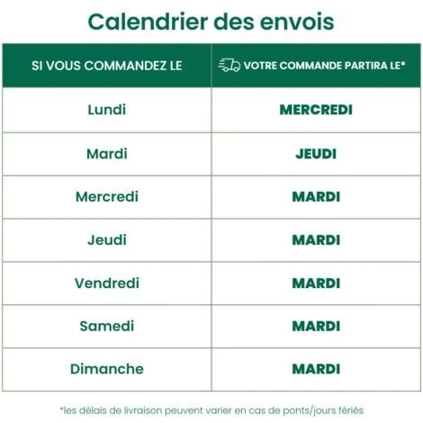 *les délais de livraison peuvent varier en cas de ponts/jours fériés