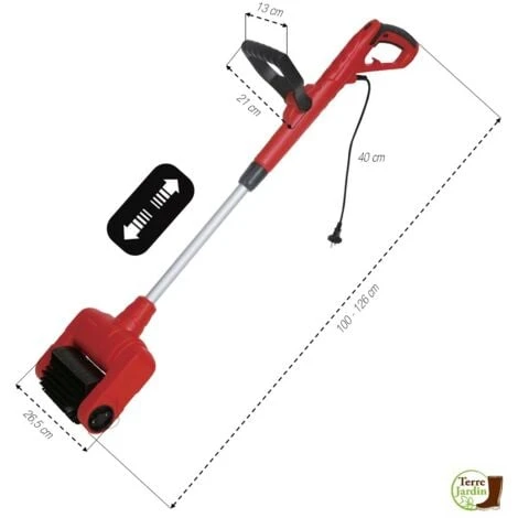 - un long rouleau nylon pour nettoyer les surfaces au sol et débarrasser les joints larges des mauvaises herbes, lichen ou mousse.