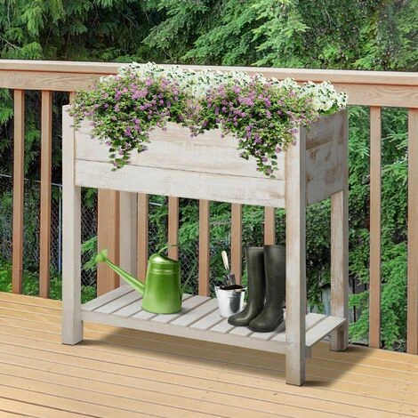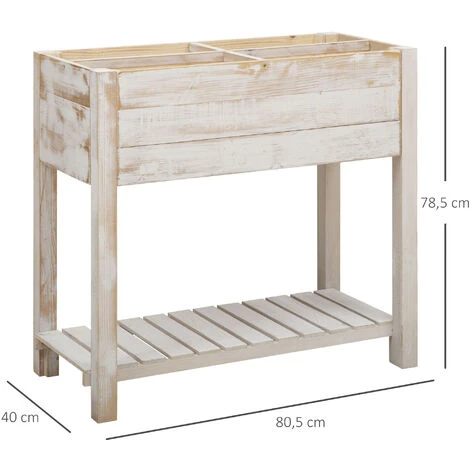– Jardinière en bois de sapin blanc effet vieilli idéale pour ajouter une touche d’originalité et d’élégance à votre extérieur