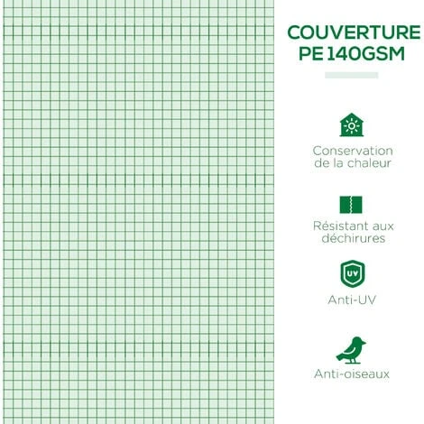 – Note : veuillez ne pas utiliser de pesticides pour éviter de détériorer la bâche Recommandé d’enterrer les extrémités de la bâche pour plus de rigidité de l’ensemble