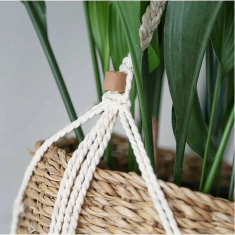 Fait en fibres naturelles, en algue marine et possédant une suspension en macramé, ce panier allie ainsi solidité et esthétique.