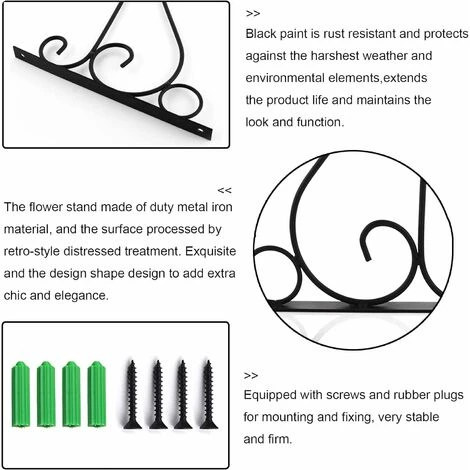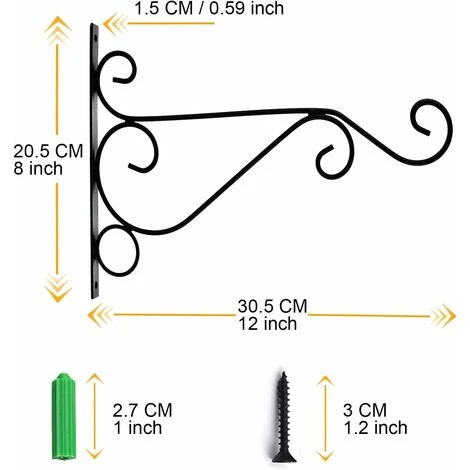 - Taille et emballage inclus: chacun avec la taille de 11,8 x 8.5 pouces, le poids est d’environ 0,4 kg. Vous recevrez un cintre pour plantes 2 pièces avec des vis filetées 4 pièces et des ancres en plastique à vis 4 pièces.