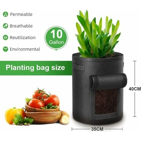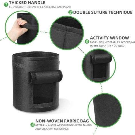 【Large application】Le pot de 10 gallons peut être utilisé pour planter des pommes de terre, des tomates, de l’ail, oignons, basilic, haricots, pommiers, papayers, goyaviers, fleurs, etc. Vous pouvez planter différentes plantes selon vos préférences personnelles.