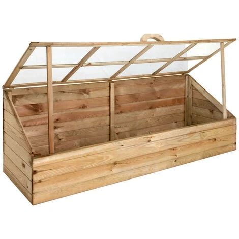 Cette serre en bois durable et esthétique vous permettra de protéger vos végétaux fragiles et de cultiver vos semis. C’est la solution idéale pour la levée des semis et des plantations en toute saison. Son bois est traité autoclave classe 3, afin de vous garantir une très haute résistance à l’humidité et aux alternances répétitives d’humidité et de sécheresse. Il est labellisé FSC garantissant une gestion durable de la forêt d’où provient ce bois. Livré sans fond. Matériau : pin massif Matière vitre : plexiglas Capacité : 305 litres Livrée en kit