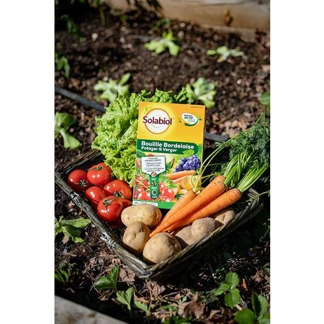 • La Bouillie Bordelaise Potager et Verger SOLABIOL est un fongicide préventif et curatif de contact à base de sulfate de cuivre dont les vertus sont reconnues depuis longtemps et utilisable en jardinage biologique.