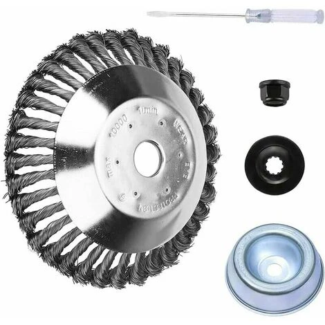 [Design unique]: Cette tete brosse debroussailleuse en fils acier torsadés a été spécialement conçue pour le jardinage, aidant à protéger vos arbres contre les dommages et à éliminer efficacement toutes les mauvaises herbes indésirables et salissantes