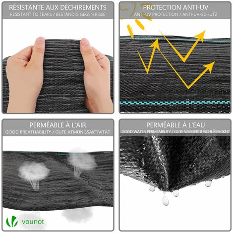 La barrière anti-mauvaise herbe à une excellente perméabilité permet à l’eau et à l’air de la pénétrer et nourrit vos plantes, mais empêche les mauvaises herbes.